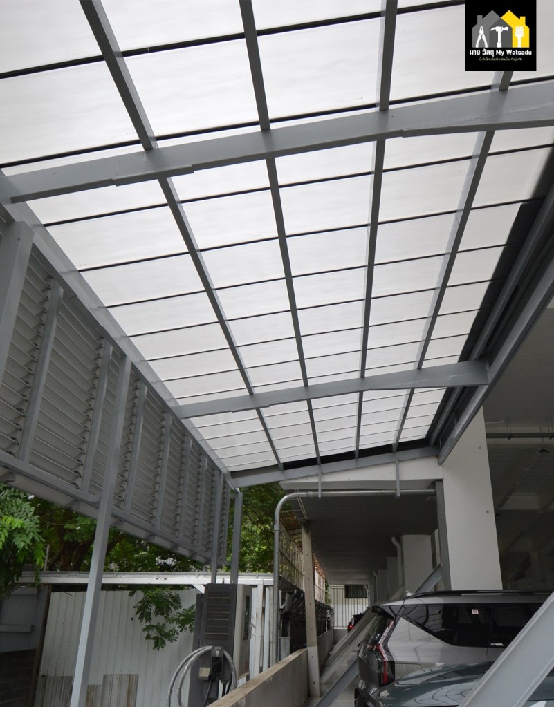 - วัตถุประสงค์การใช้งาน: หากต้องการ “กันฝน” อย่างเดียว วัสดุโปร่งแสงอย่างโพลีคาร์บอเนตก็เพียงพอ แต่ถ้าต้องการ “กันร้อน” ด้วย ควรเลือกวัสดุที่มีฉนวนหรือทึบแสง เช่น ไวนิล หรือเมทัลชีท PU