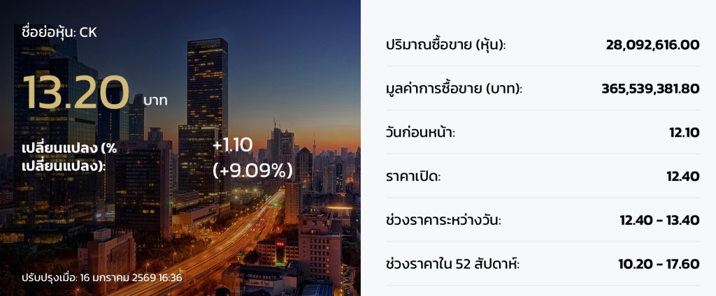- ตลาดหลักทรัพย์แห่งประเทศไทย. (2567). ข้อมูลรายบริษัท/หลักทรัพย์: CK. สืบค้นจาก https://www.set.or.th