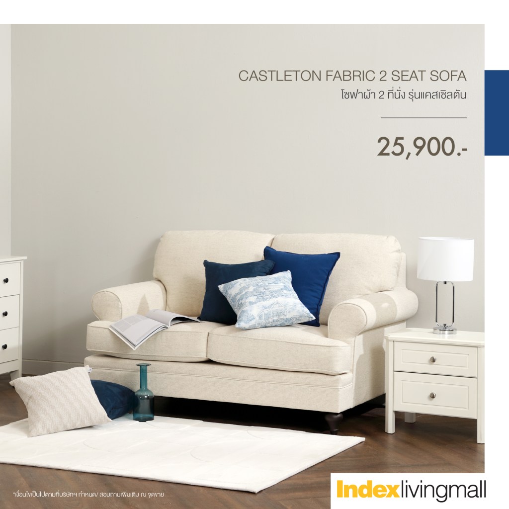 - จุดเด่น: โซฟาผ้า 2 ที่นั่งขนาดกะทัดรัด แต่หน้ากว้างนั่งสบาย ขาไม้สไตล์สแกนดิเนเวียนช่วยให้ห้องดูโปร่งและกว้างขึ้นทันตาเห็น
